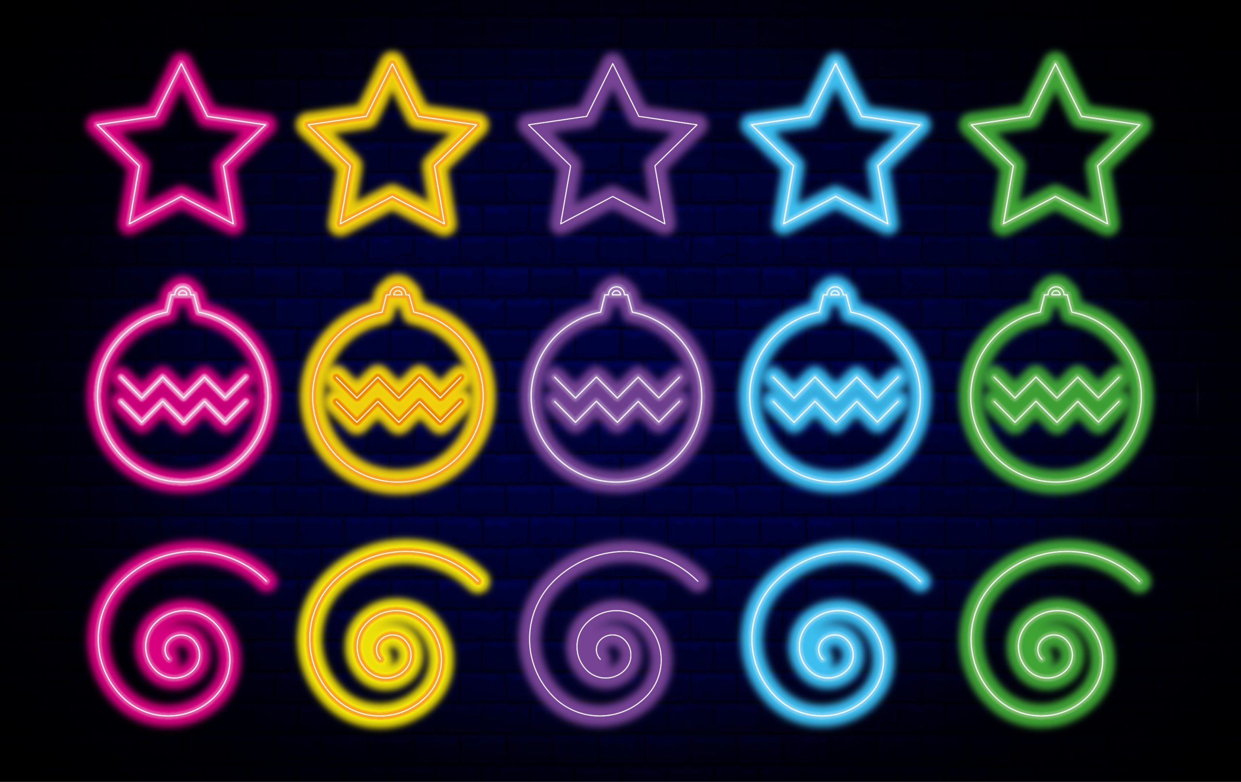 Inspired by the ‘glow’ of Christmas and the coloured LEDs we use to decorate our trees, I created a neon light identity.