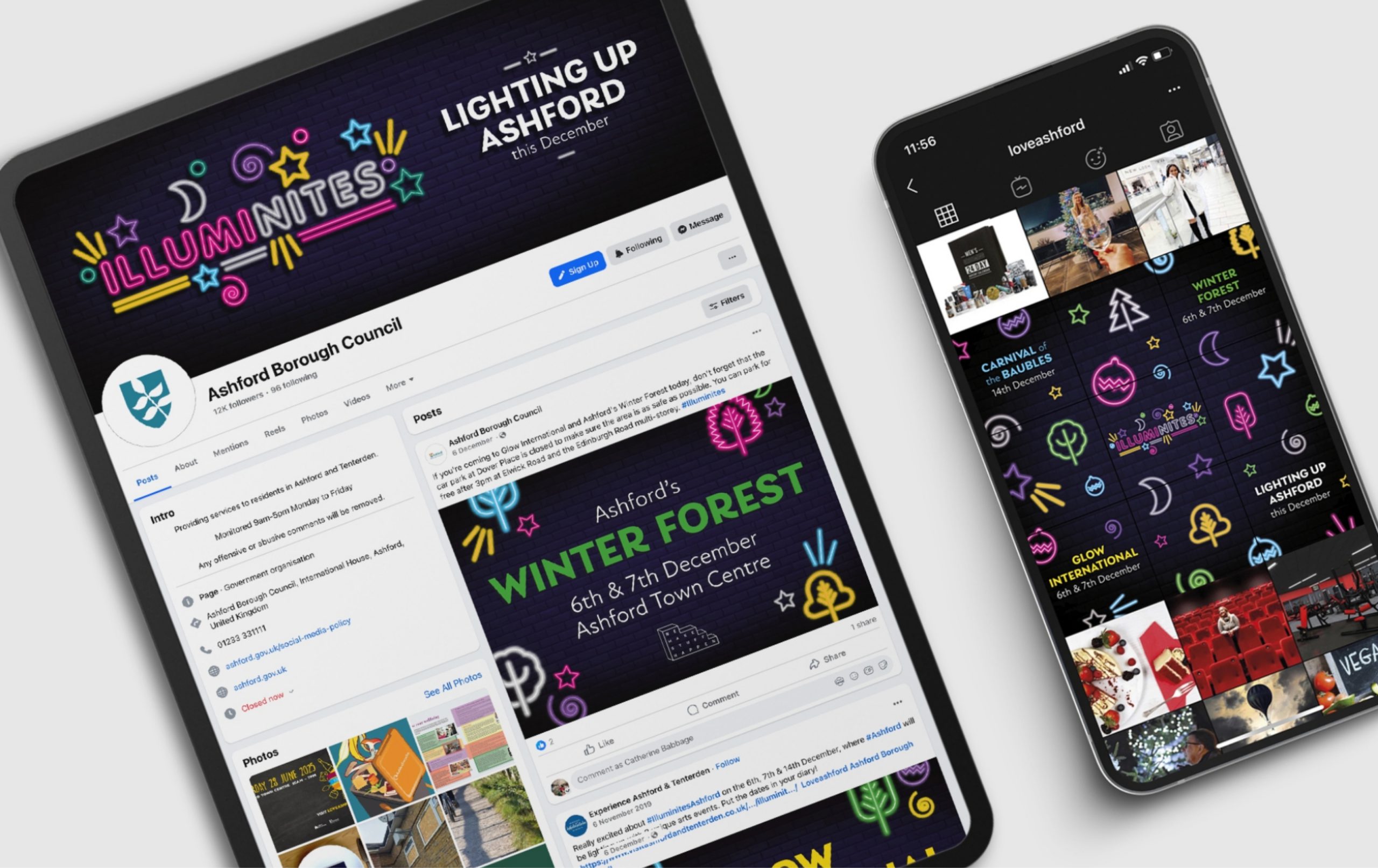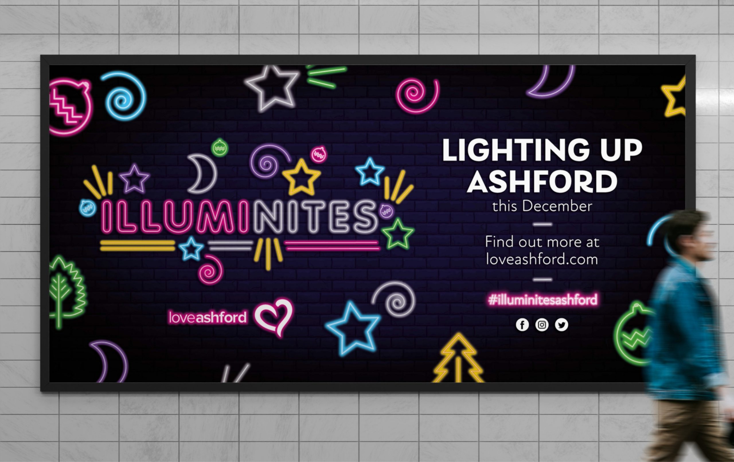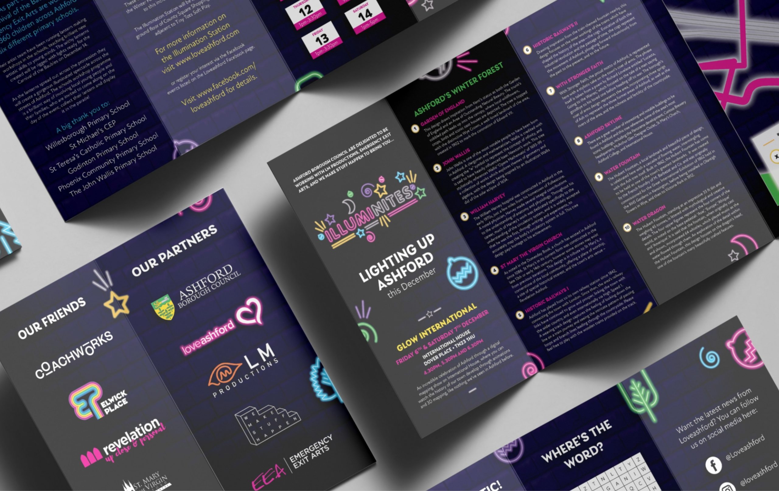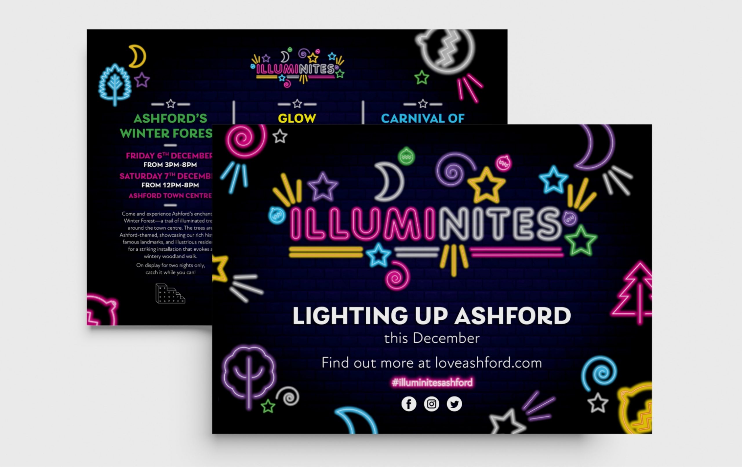 Illuminites was a series of light-based events including a custom animated building projection, carnival with illuminated baubles made by local schools/businesses and a trail of exclusively designed and built Ash trees. This is a huge event on the Ashford Borough Council creative arts calendar.
